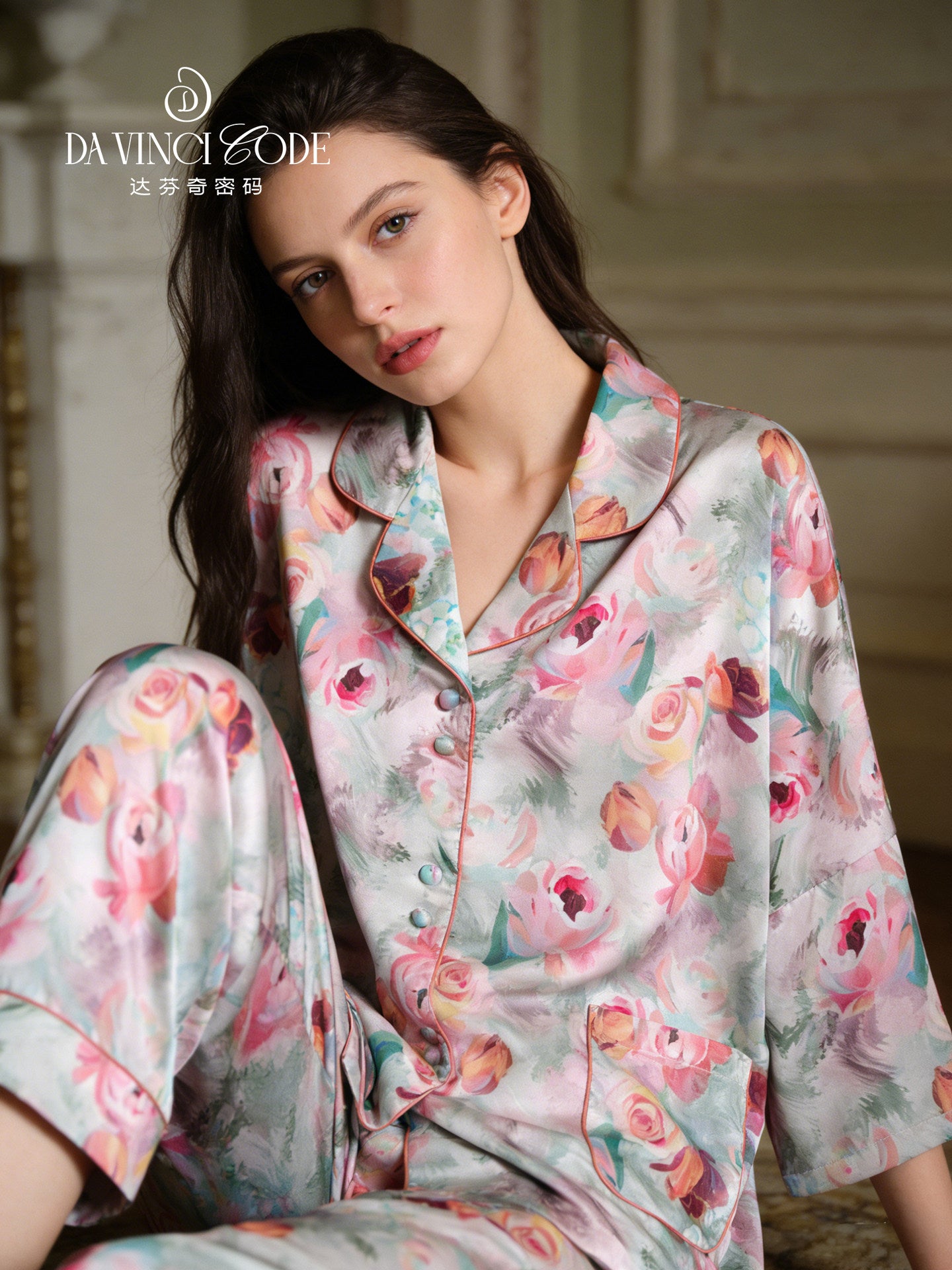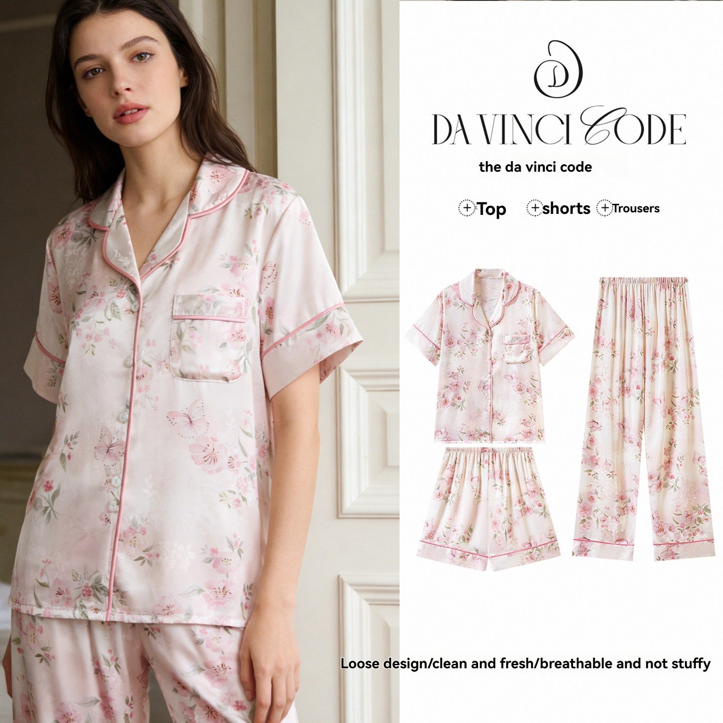 Da Vinci Code 2026 Summer New Arrival Women's Three-quarter Sleeve Loose Pajamas Loungewear, Wearable Outside, Gift Box Set, Perfect for Mom
